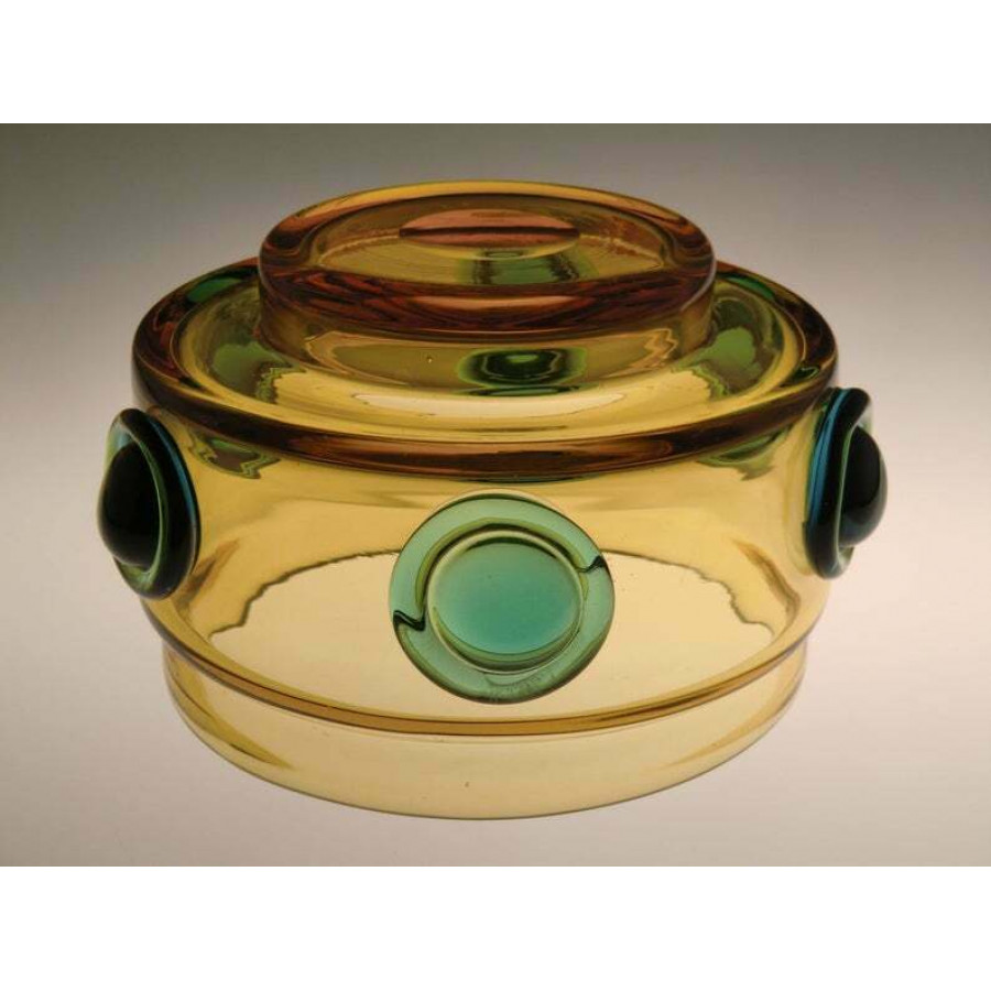 Vintage Czech Bohemian Art Glass Bowl Supermodernist & Space Age Chribska glassworks Heavy Glass Designed by Josef Hospodka Height: 4.0 inches (10 cm) Opening: 6.2 inches (16 cm) Very good condition Country of Origin: Czechoslovakia |