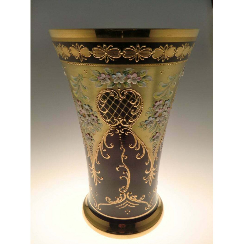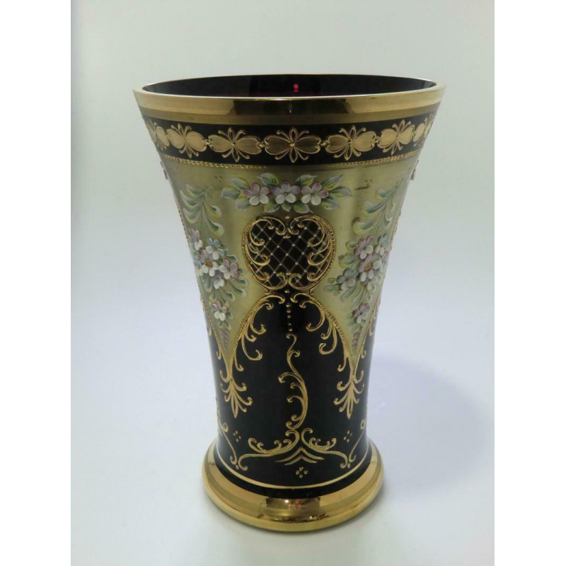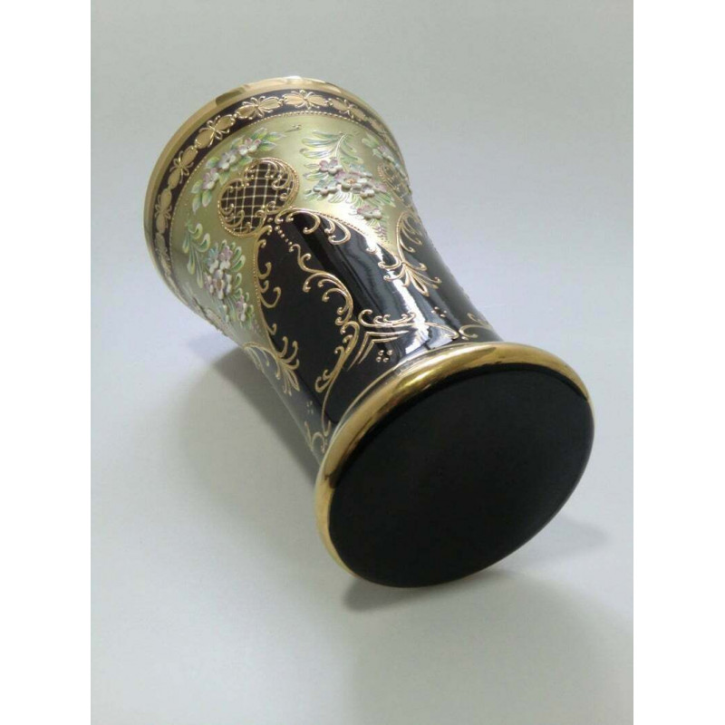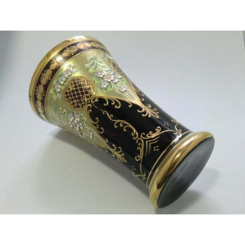 Bohemian Czech Gold High Enamel Glass Vase Novy Bor - Haida glassworks Hand Made Height: 10.0 inches (25.5 cm) Opening: 6.7 inches (17 cm) Very good condition Country of Origin: Czechoslovakia |
