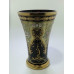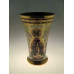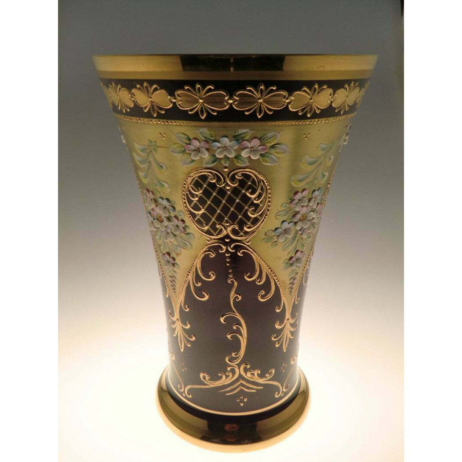 Vintage Hand Made Enameled Glass Vase - Gold Black Floral - Haida - Bohemian